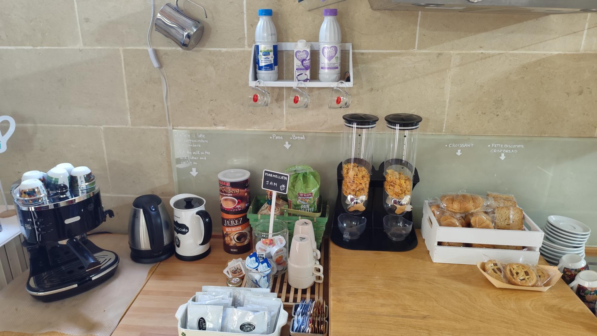Tout ce dont vous avez besoin vous sera proposé pour un petit-déjeuner italien autogéré à prendre le matin dans la salle commune du gîte. À la disposition des clients, il y aura du café, de l’orge, du ginseng, du thé et des tisanes, du lait, du jus de fruits, des biscuits, Biscottes, beurre, confiture, céréales, yogurt, croissants emballés